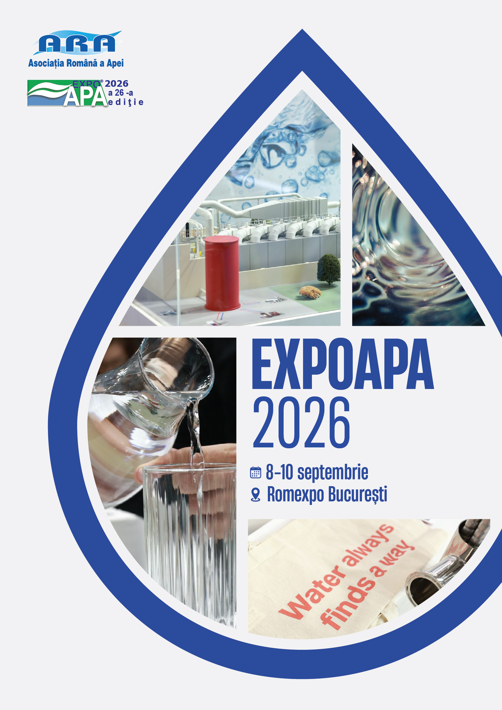 Asociația Română a Apei va organiza, în perioada 08-10 Septembrie 2026 - ExpoApa 2026 la Complexul Expozitional ROMEXPO din Bucuresti.